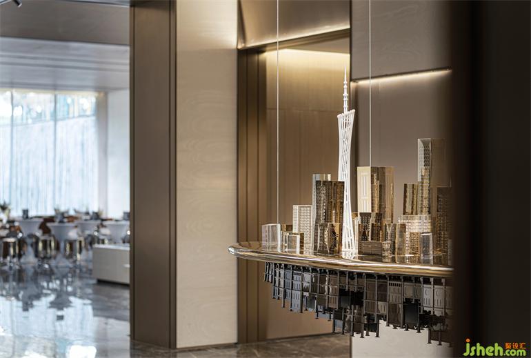 廣州城市倒影的藝術(shù)裝置,把當(dāng)代建筑地標與經(jīng)典騎樓作對照,售樓部設(shè)計在探索藝術(shù)、自然和建筑的相互作用下,暗喻著在新舊更迭中,城市宛如一個有機生命體不斷向前發(fā)展。