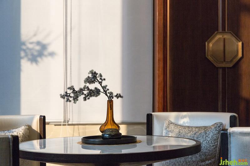 室內(nèi)外廊道的設(shè)計靈感來源于蘇式園林的回廊,與之不同的是,設(shè)計師融入后現(xiàn)代城市雕塑設(shè)計之風(fēng)采,嚴(yán)謹(jǐn)?shù)臉?gòu)圖,寫實的表意,中式意象的洗練,定性了整個建筑一種嶄新的審美風(fēng)格。設(shè)計公司