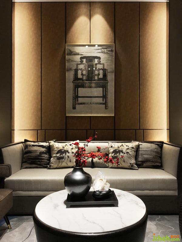 一絲溫暖的橙黃與灰藍提亮空間視覺,讓整個嚴(yán)肅的“規(guī)矩空間”在沉穩(wěn)中又透顯出無限的生機與活力。來者觀湖品茶,與山水相伴,樂享閑適。設(shè)計公司