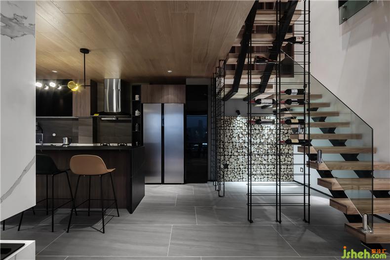 右手邊樓梯處的鋼架與木頭所構(gòu)架的紅酒儲(chǔ)藏區(qū),正好為一個(gè)舒適時(shí)光,準(zhǔn)備了一份觸手可及的儀式感,用自然醞釀典藏.