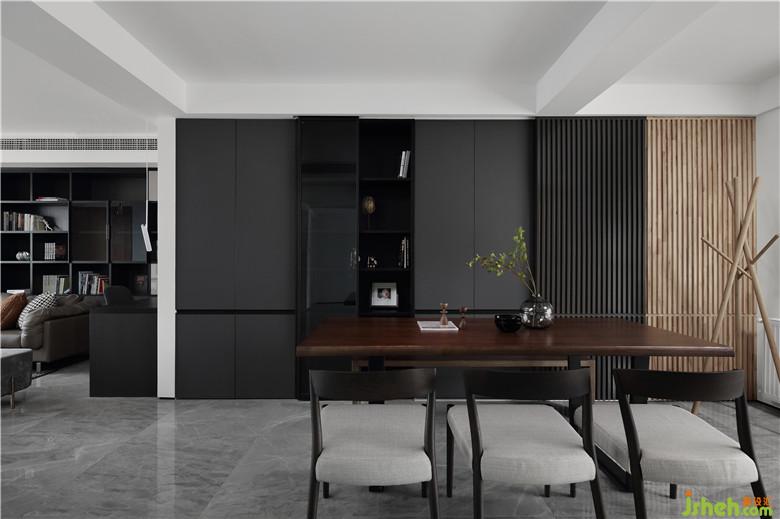 黑白灰和原木色,無論身處哪個位置,都擁有不同的透光度,氛圍也隨著光線發(fā)生著妙不可言的改變。啞光柜體、玻璃移門、拼接木飾面,讓現(xiàn)代感十足的設(shè)計線條與比例,營造層次豐富、設(shè)計語言多彩的立體餐廳空間。