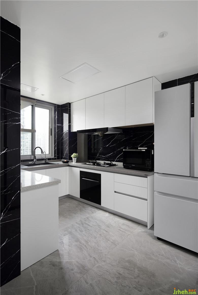 黑白灰三色,利用瓷磚自然的紋理進行對比、融合,品味利落線條下現(xiàn)代簡約的廚房空間和在這樣的氛圍下誕生的一道道美味,是熟悉的家的味道。