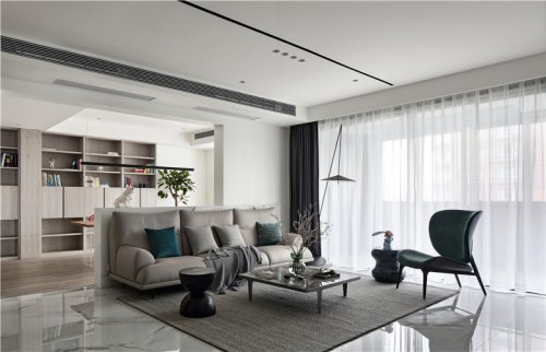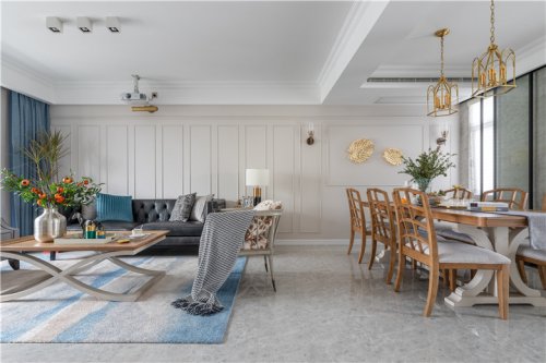室內(nèi)設(shè)計師利用玄關(guān)、廚房、客廳不同方位和角度的自然光線變化來調(diào)整餐廳區(qū)域的景深,形成一種連續(xù)、重疊的效果。不同的空間交互延伸,構(gòu)筑餐廳大氣敞朗的人文意象。