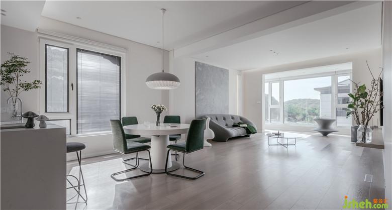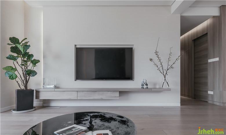 思考的空間對于擁擠的城市來說,是一種居住選擇。白色、灰色、木色和綠色,一切都是淡淡的,沒有其他多余的色彩與裝飾。背景墻、氛圍燈光和沙發(fā)紋理一起呈現(xiàn)出立體化的視覺思維。