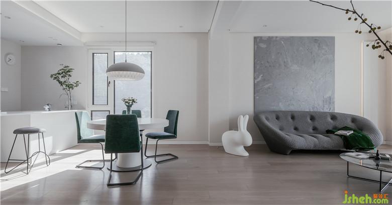 餐廳是綠色清新色調(diào),簡單的花木替代繁復(fù)華麗的插花,素樸中由近及遠(yuǎn)地透著點(diǎn)點(diǎn)層次,呈現(xiàn)安靜自然的詩意。一盞別致的吊燈呼應(yīng)圓桌,提升空間關(guān)系變得愈加飽滿。