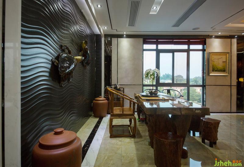 材質(zhì)之間的呼應(yīng)與襯托、線條之間的交織與平衡,幾何形態(tài)之間的構(gòu)成與對(duì)比,沒(méi)有多余的一筆,不帶絲毫拖沓,在這樣沒(méi)有喧嘩的交流中,整個(gè)空間似乎變得香醇,既創(chuàng)造了很好的舒適感,又取得了極佳的視覺(jué)效果