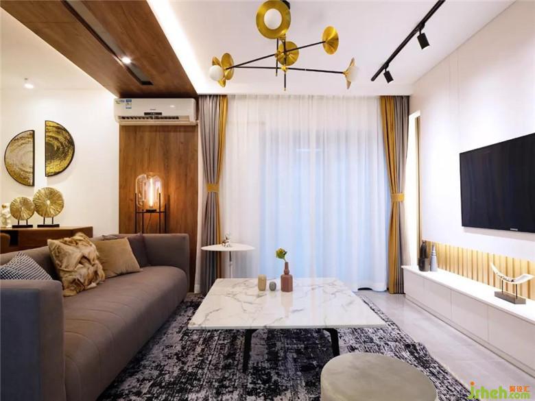 客廳改造后動線清晰,輕奢精致,設計師設計了一面落地窗,打通了和臥室的陽臺,增加客廳和臥室的光線,清爽的大理石紋理給客廳增加一縷清涼??蛷d做了半吊頂木質的設計,這樣一來客廳與餐廳的功能區(qū)域更加清晰,復古輕奢的吊燈,金屬質地提升了客廳的格調和氣質。