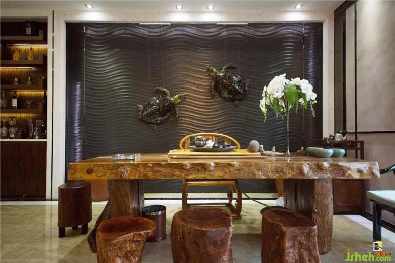 走過紋樣細(xì)膩的一角,正廳中央的紋路似蒼勁的書法,在輕薄的絹面上翻飛,這些“墨跡”泛著久遠(yuǎn)的意蘊(yùn),散發(fā)出攝人心魄、無法抗拒的美,一壺清茶靜佇,仿佛已等了許久,而此處更像極了心的故鄉(xiāng)。