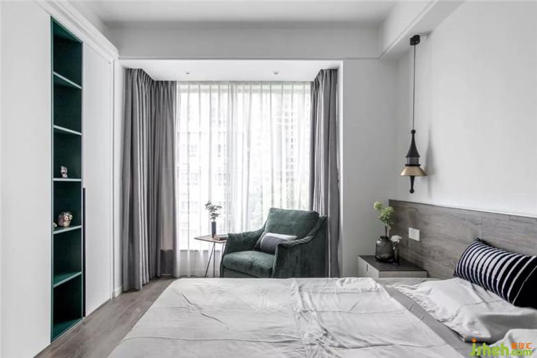 臥室是一個(gè)最能體現(xiàn)屋主喜好的一個(gè)場所,所有的設(shè)計(jì)都圍繞男女主人展開的,墨綠色的開放柜、個(gè)性有趣的吊燈、綠色的單椅、顏色豐富的擺件,讓明快的空間增添了的復(fù)古氣息,彰顯了屋主的生活理念。