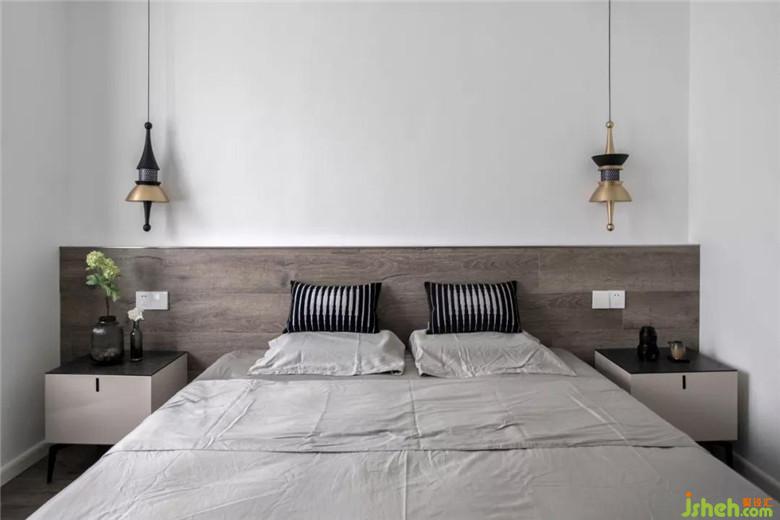 高雅自由的空間,充滿了唯美的想象,灰色加墨綠色的搭配,提升空間沉穩(wěn)度,黃銅色床頭燈不但跟墨綠色很搭,且增添了空間的復(fù)古氣息。原木色的床頭背景墻一方面保留了現(xiàn)代風(fēng)格的簡潔、自然,又增添了空間的層次感和溫潤靈動(dòng)的尺度感。