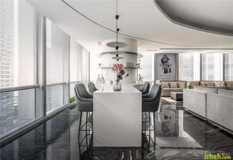 窗外的陽光正好,暖暖的撒在沙發(fā)上。綠植也是那樣可愛,迸發(fā)著蓬勃的生命力。柱形的吧臺(tái),巧妙的分割出私密的公共區(qū)域,你也許會(huì)在這里。