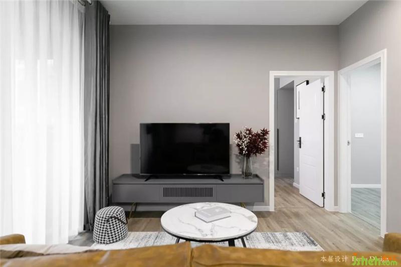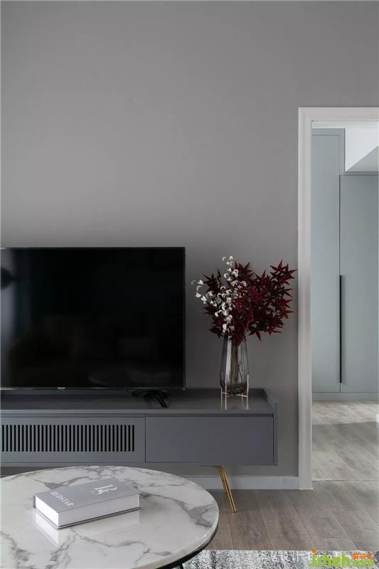 這套房子將作為出租房使用,大多數(shù)上班族待在家看電視的時間也不多,所以在電視背景墻上就不做過多的設(shè)計。選用具有設(shè)計感的電視柜,增添這個家的藝術(shù)氛圍。室內(nèi)設(shè)計師