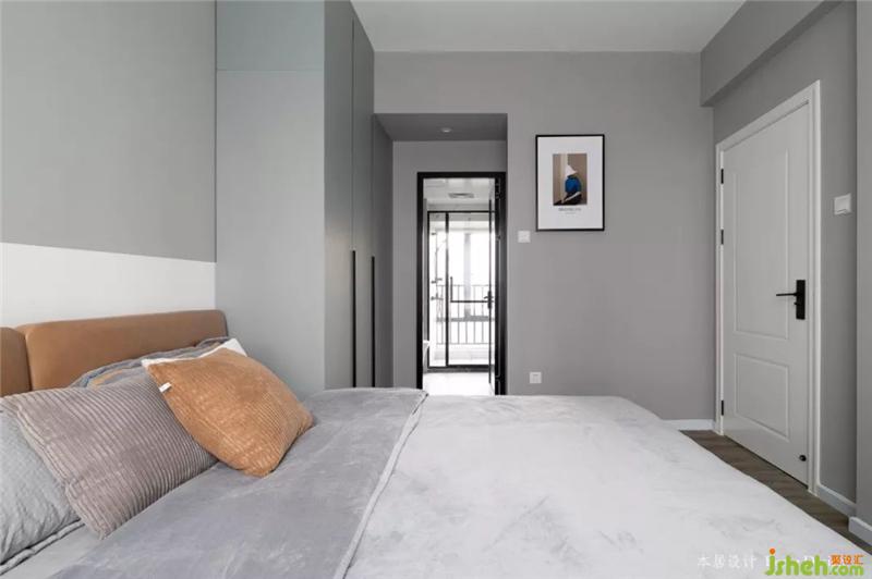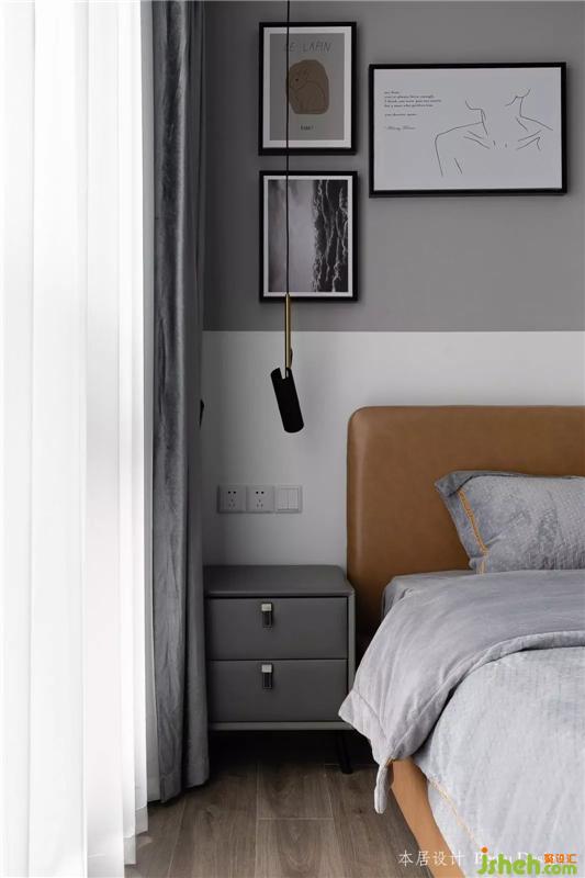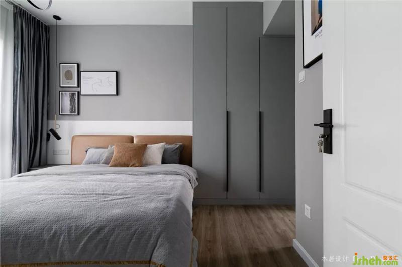 全屋延續(xù)淺灰調(diào)+棕色的配色,棕色床體+灰色柜體+灰色窗簾現(xiàn)代意式風(fēng)格,簡(jiǎn)約中透露著高級(jí)時(shí)尚感。室內(nèi)設(shè)計(jì)師