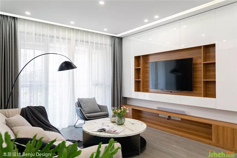 屋主要求整屋是簡約暖色調(diào)的風(fēng)格,同時又具備收納的功能,因此我們將電視的背景墻設(shè)計收納柜,白色+原木色,簡潔而又富有生活氣息。室內(nèi)設(shè)計師