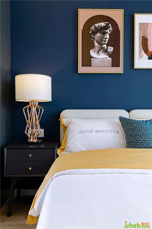 次臥床頭旁的墻向內(nèi)縮進(jìn),給主臥的衣柜騰出了空間。室內(nèi)設(shè)計(jì)師