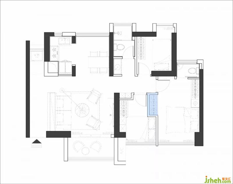 依據(jù)業(yè)主要求,這間房空置,留作倉庫使用,增加收納空間。室內(nèi)設(shè)計(jì)師