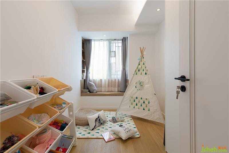 ▼緊靠著次臥的兒童房,是滿滿童真的趣味空間。不過考慮到小朋友現(xiàn)在還很小,暫沒有設(shè)計單獨的床鋪(不過布置圖上有體現(xiàn)哦~,后期添置也很方便),現(xiàn)階段主要作為一個玩耍的空間,滿滿一架子的玩具,屬實也會嫉妒一下小朋友呢~