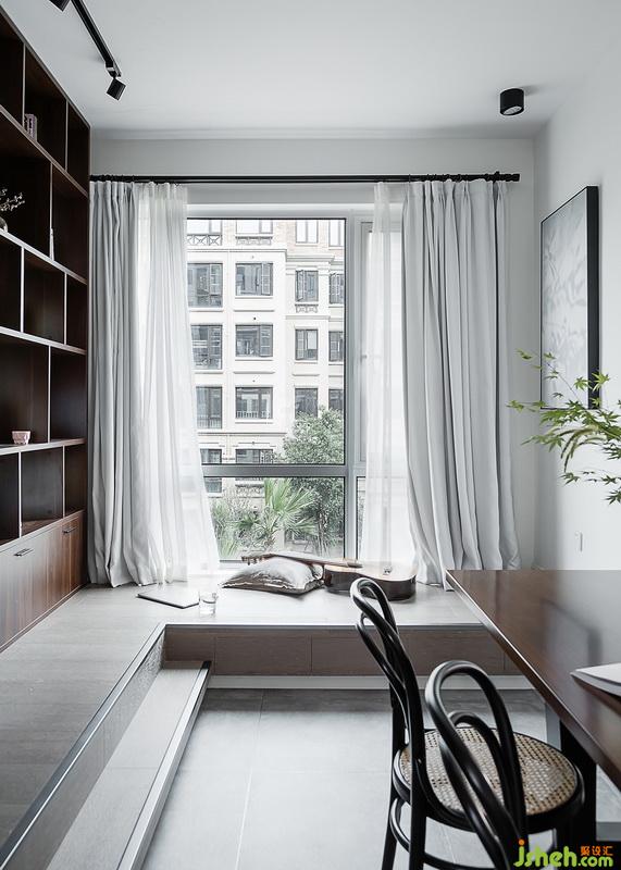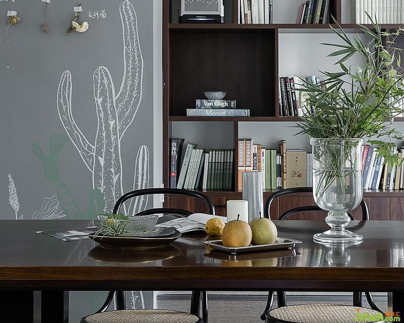 書(shū)柜和餐桌室內(nèi)設(shè)計(jì)師大膽用色選用胡桃木制作,胡桃木木紋精巧別致,強(qiáng)化了空間感,展現(xiàn)出空間低調(diào)的精致。