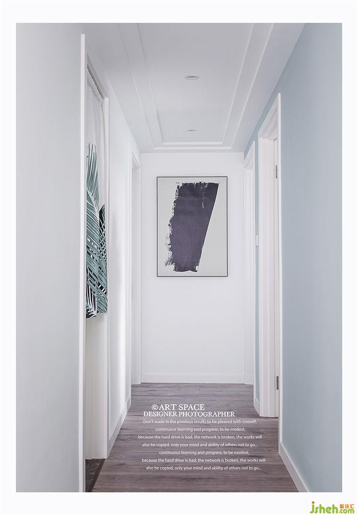▲中間套的硬傷就是有個(gè)長(zhǎng)長(zhǎng)的走廊,沒(méi)有做柜子啥的有點(diǎn)浪費(fèi)空間了。但是這樣真的很簡(jiǎn)約清爽。衛(wèi)生間外面裝了個(gè)門簾,點(diǎn)綴下過(guò)道的視覺(jué)。走廊盡頭的這幅畫,貌似也只有我欣賞的,老公說(shuō)為啥不讓他畫一筆就好呢~
