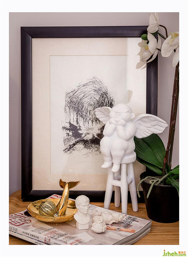 ▲床頭柜是下面抽屜上面敞開的款式,每天要用的放在敞開部分,不至于桌面太亂。床頭的掛飾被我老公稱之為拖把,唯一支持我的只有我親媽以及設(shè)計(jì)師大大~
