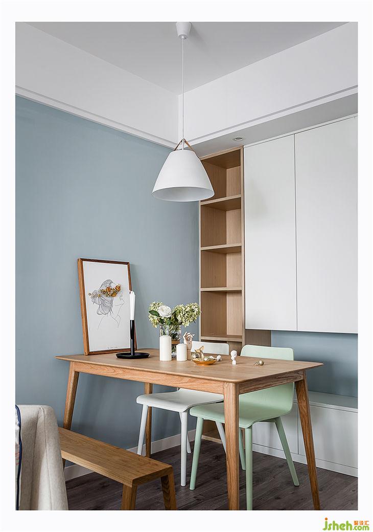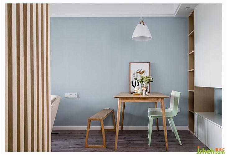 ▲餐桌區(qū)域雖然小,但是色彩的搭配上和設計師討論了很久,也看了非常多的餐桌方案。最后選擇了白橡木的餐桌和條凳,然后和燈以及整體空間色系搭配的椅子,一眼望去的東西全是淘寶買的,質(zhì)量還不錯。