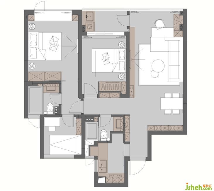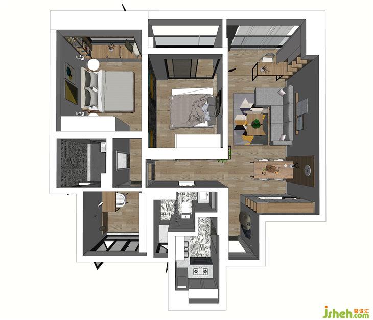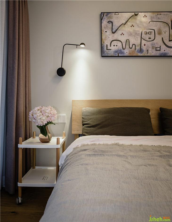 客房的畫是戶主從國外代購建筑大師的畫,卻是簡潔素雅的客臥中點睛之筆。木質(zhì)、中性色調(diào)的寧靜,黑色軟裝的厚重沉穩(wěn),穿插了暖黃色溫的調(diào)和,點綴幾幅木質(zhì)掛畫,一切顯得和諧溫暖。