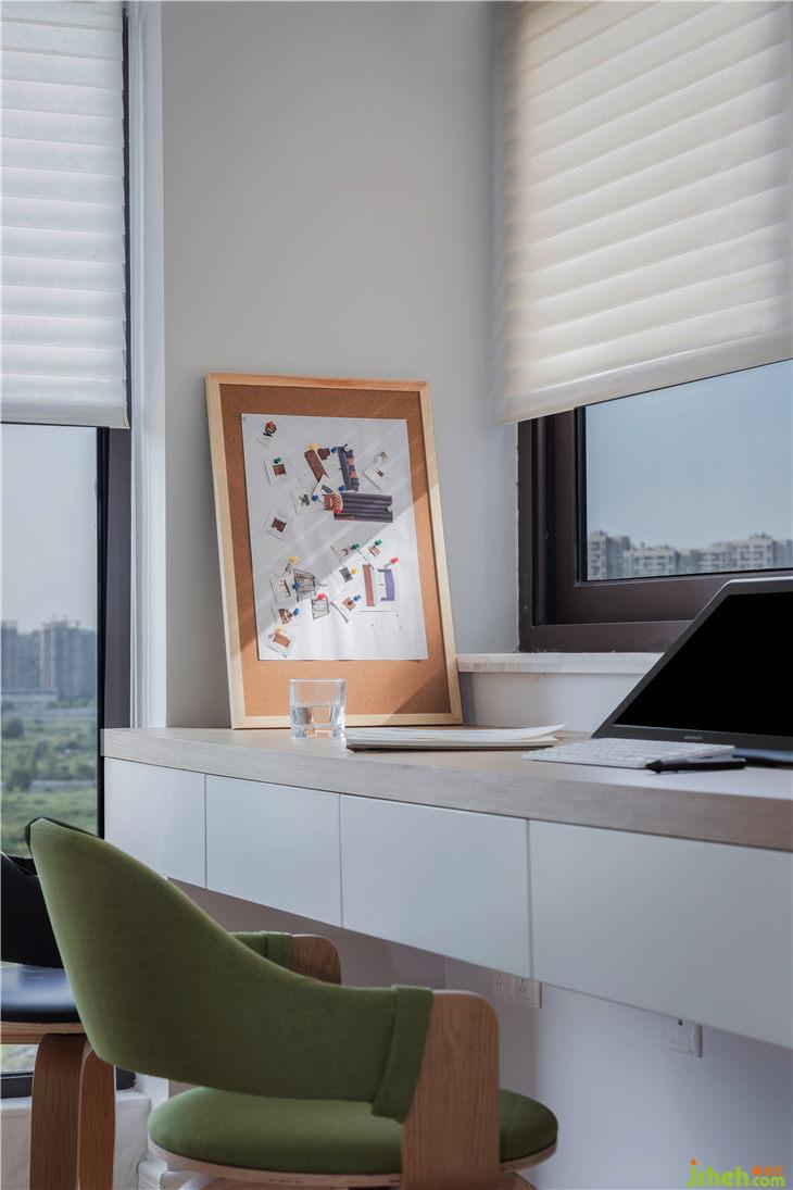 考慮到戶主工作的特殊性,窗簾采用了風(fēng)琴簾,陽光通過風(fēng)琴簾照射進來光線更加柔和,創(chuàng)造了良好的工作氛圍。