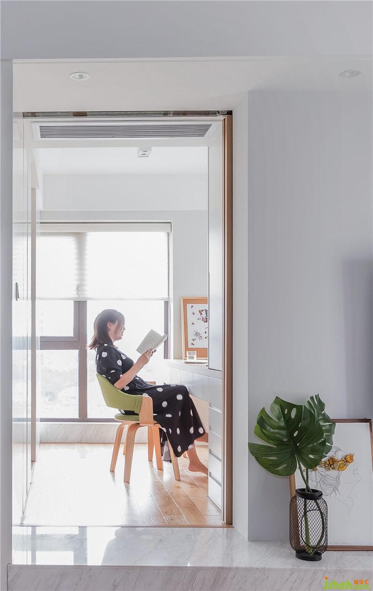 下午時光,陽光傾滿整個書房,一縷柔和的光線灑在柔美的臉上,輕風(fēng)吹動著發(fā)絲,優(yōu)美至極!看到這一幕我也幸福的笑了,我想這就是我想要的設(shè)計與生活吧!始于晝夜出行,囤于書房如你。