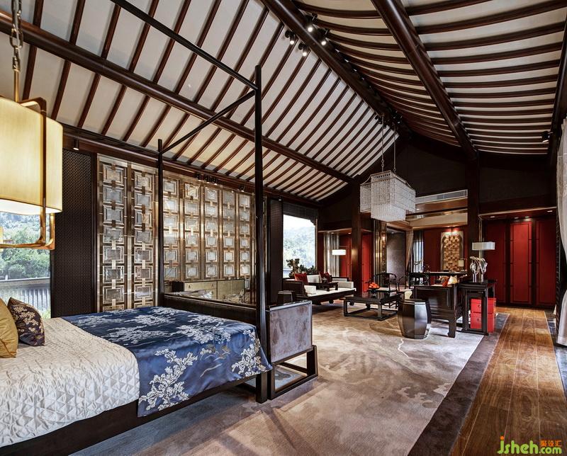 挑高的屋宇、兩側(cè)全明落地門窗的設(shè)計(jì),引入大量自然光線與氣韻。整齊光潔的屋梁,精致大氣的柜體,舊時(shí)中式床榻椅具,針腳細(xì)膩的絲質(zhì)床品,再現(xiàn)了舊時(shí)合院生活的典雅,使居住者于此,心中疏朗又宏大。