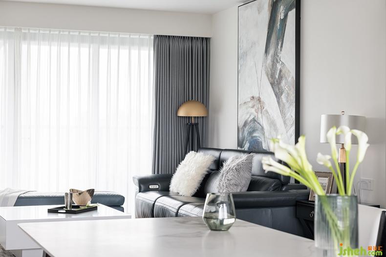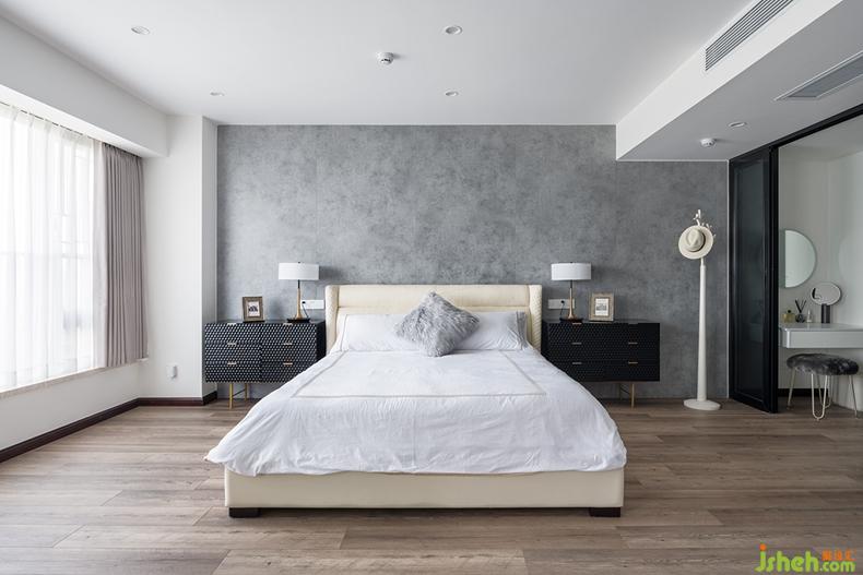 縱觀主臥,這個空間沒有多余的色彩,累贅的粉飾,白色、灰色唱主旋律,間或添一抹黑色。沒有綠植,也沒有掛畫,這些常用的裝飾點綴手法在這里隱盾,只用顏色的深與淺,濃與淡來展現(xiàn)另一番低調(diào)風(fēng)貌??臻g追求少即是多的原則。