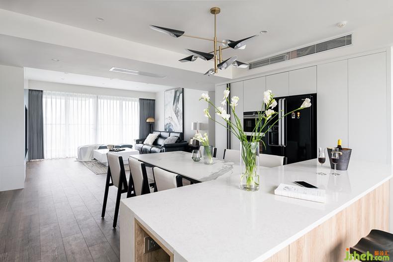 空間以白色、黑色奠定基調(diào),利落線條勾勒風(fēng)格樣貌。
