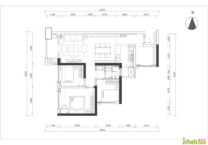 衛(wèi)浴采用了洗手臺外置的設(shè)計手法,不僅巧妙劃分了功能區(qū),也給過道空間帶來了充足的光線。六邊形小彩磚與原木地板將兩個衛(wèi)浴與過道空間清晰劃分,更便于日常打理。室內(nèi)設(shè)計師