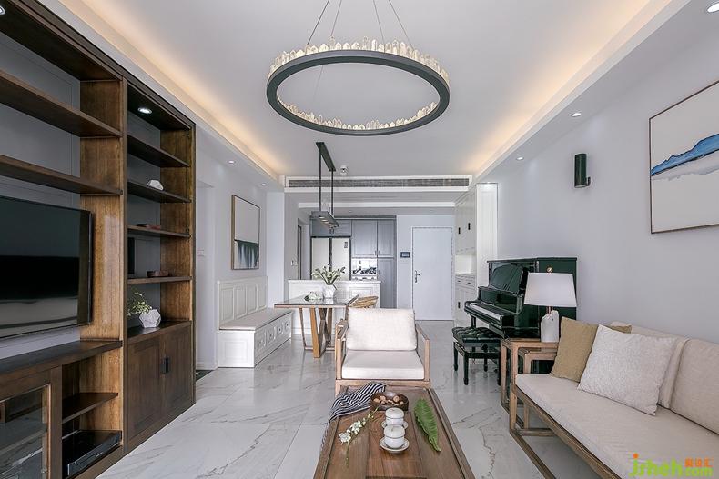 客廳演繹著明澈極簡的生活美學——簡單利落的木質(zhì)線條勾勒出空間骨架,釋義生活的黑白鋼琴、溫軟沙發(fā)、水墨掛畫與禪意三兩則落成空間肌理。