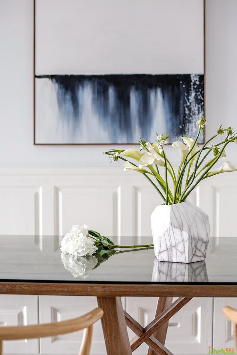 客餐廳之間不設隔斷,開放式的設計手法讓視覺空間無阻礙橫向延伸,也讓各功能空間的通透明亮度更高。