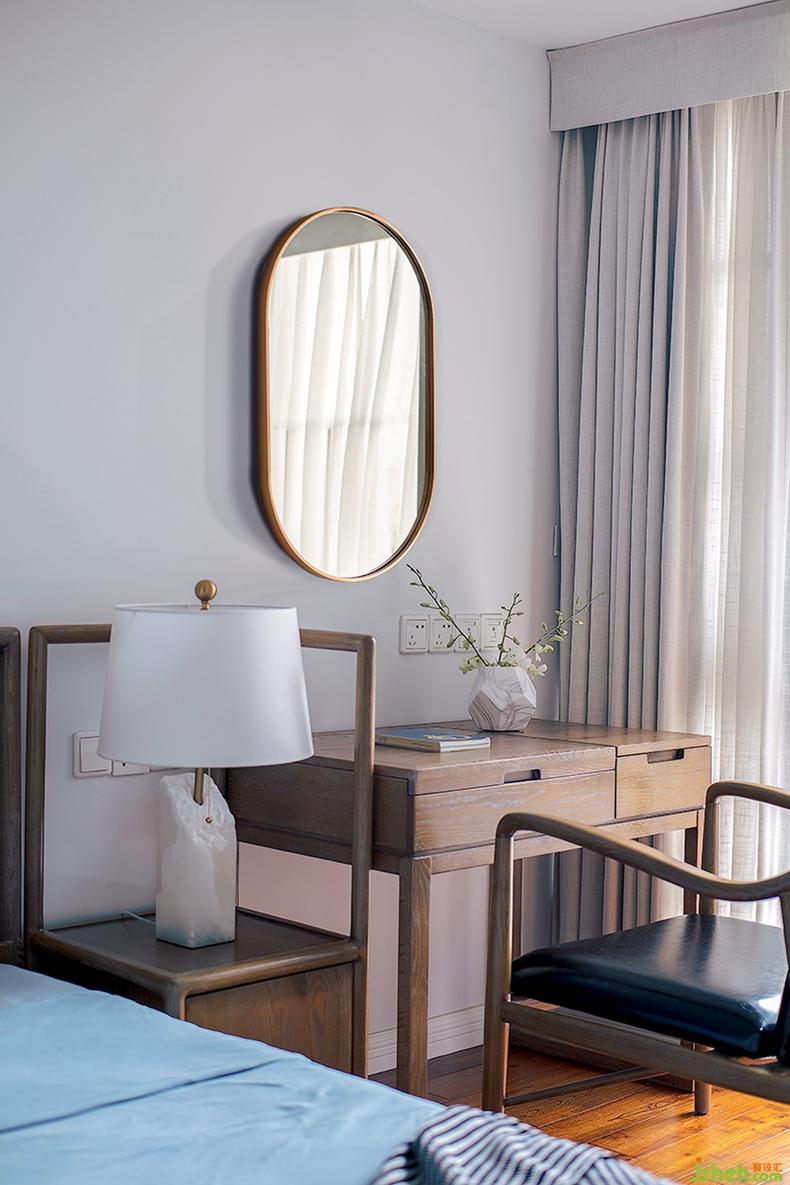 梳妝鏡、Finn Juhl 45椅與床頭燈,曲直線條的間斷與連接,構(gòu)筑出功能角落獨(dú)有的美感。