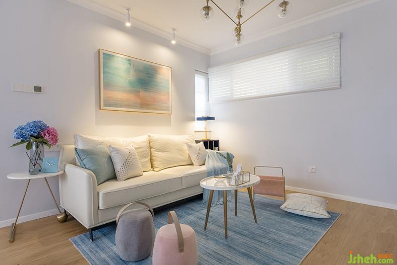 純白的百葉窗簾巧妙地過(guò)濾了自然光線(xiàn),使空間更加通透明亮。工藝感十足的吊燈,溫馨的純色布藝沙發(fā),小小的客廳,幸福的溫度脈脈而生。
