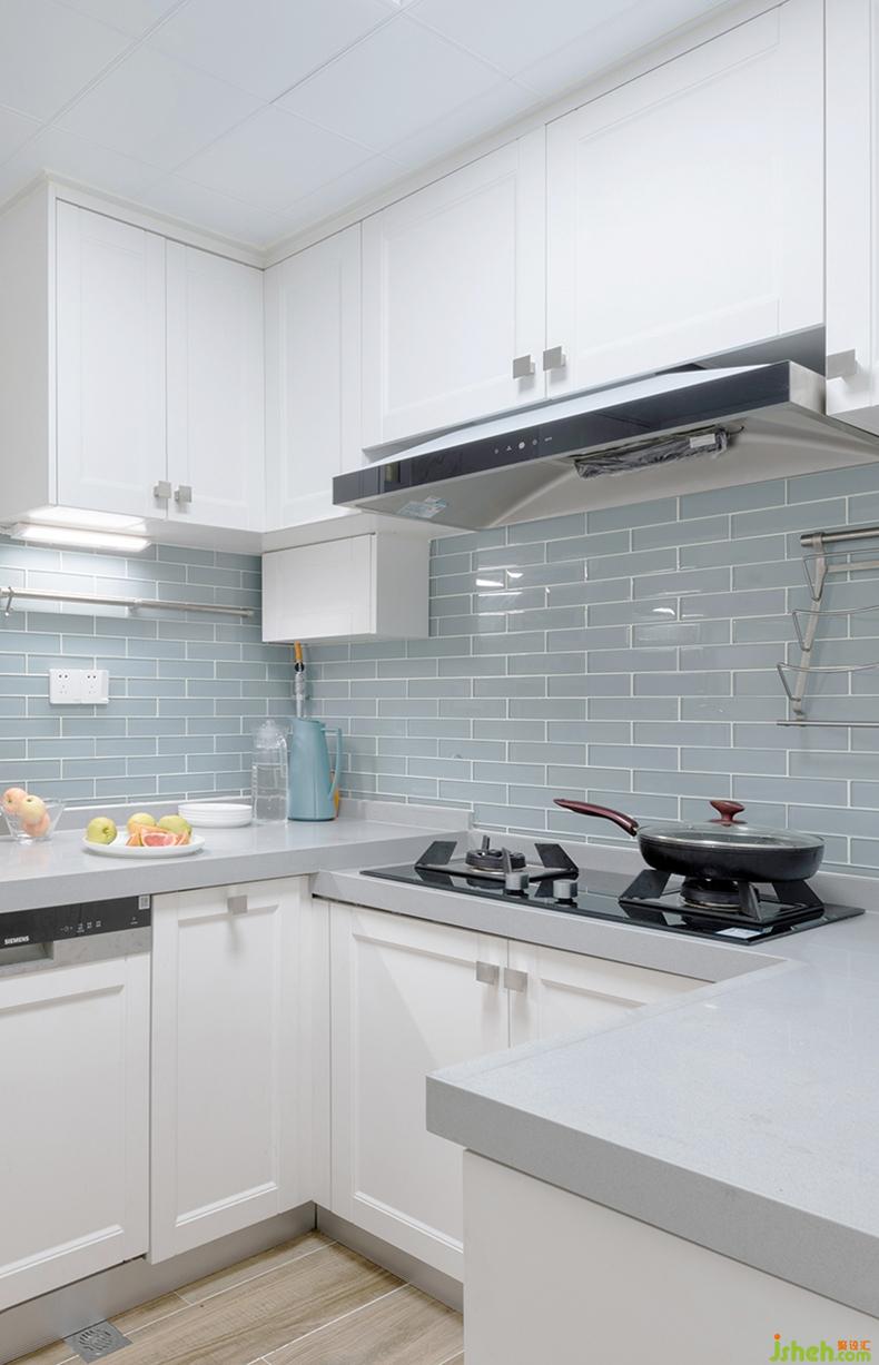 通透的玻璃磚做廚房墻色,使小空間透出高雅精致的光澤感,更顯整潔明亮。純色一體式壁櫥上下排布,將空間利用拓展成三維,方便于勞作時(shí)取物。室內(nèi)設(shè)計(jì)師