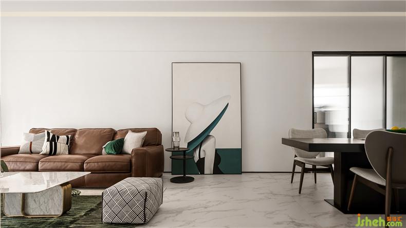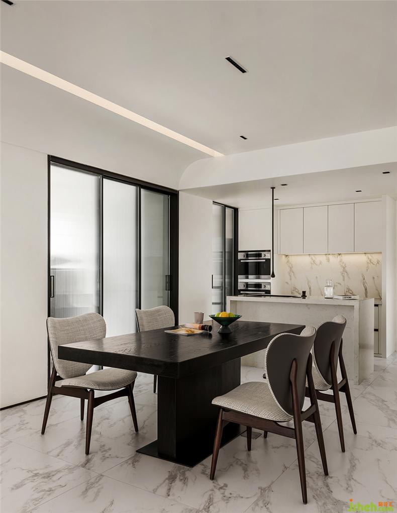 客廳、餐廳、西廚島臺(tái)三區(qū)一體,強(qiáng)化主空間的功能使用,室內(nèi)設(shè)計(jì)師而且視野開闊、格局疏朗,兼容藝術(shù)與生活;