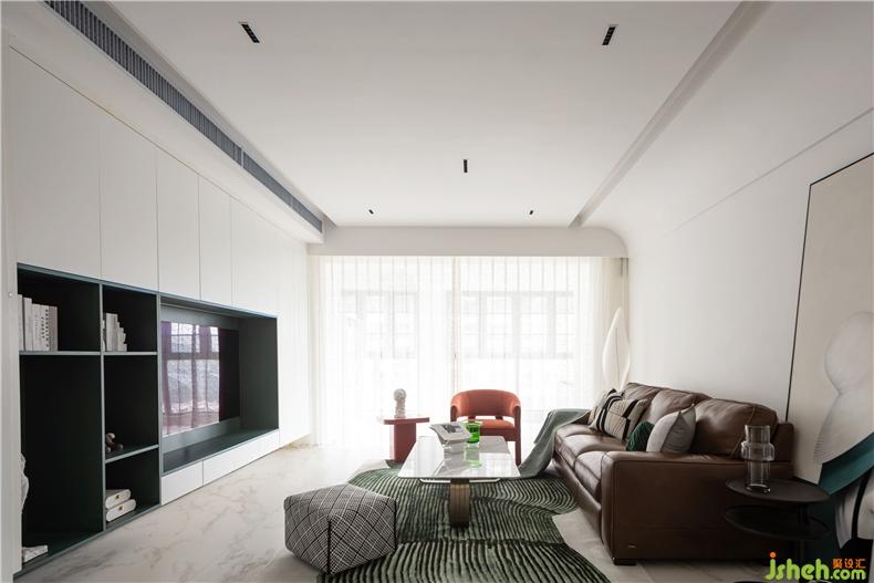 設(shè)計(jì)以白色為主調(diào)亮空間,并通過(guò)客廳、兩側(cè)開窗最大限度的引入自然光,開合之間,風(fēng)也能自由游走,解決了原始格局采光、通風(fēng)較差的問題;