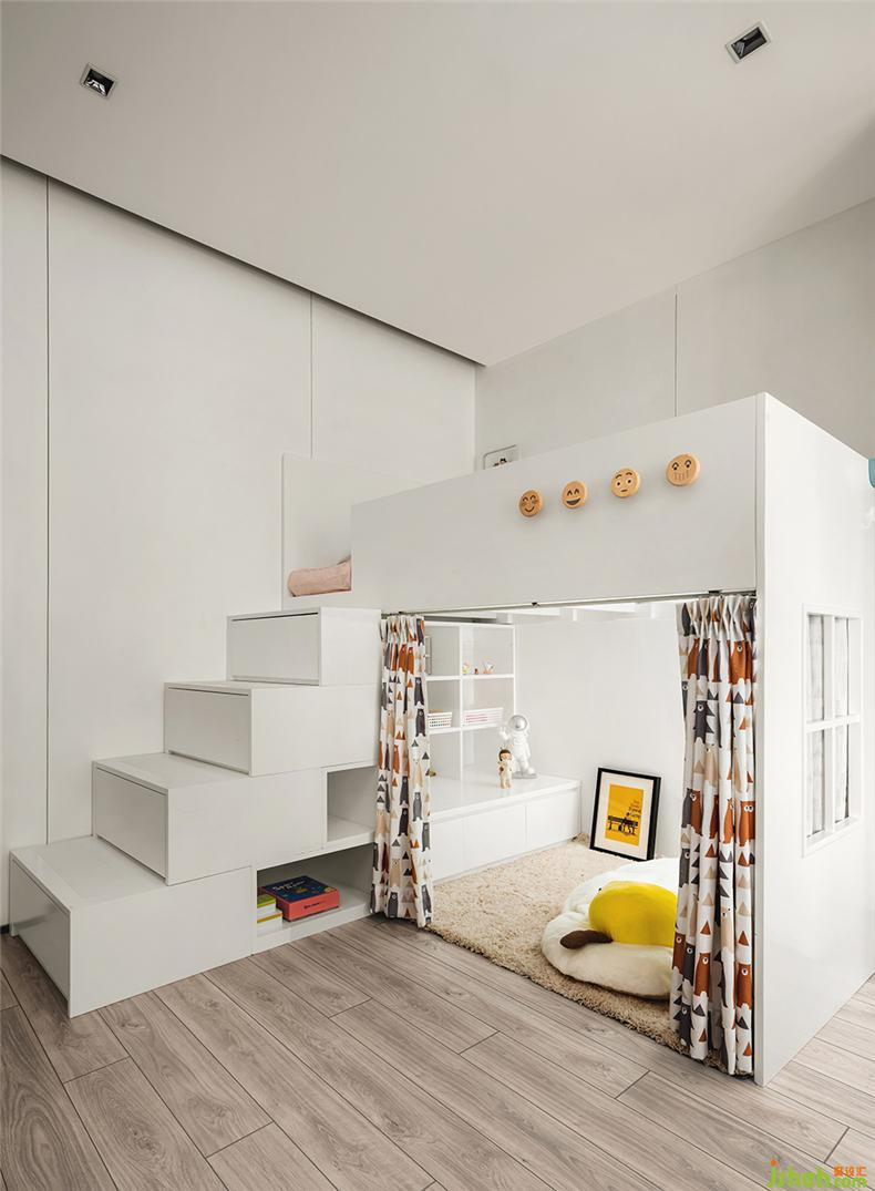 老人房旁邊就是小孩房,這里原本是主臥,光線好、環(huán)境好、空間大,正因如此,業(yè)主毫不猶豫的給了孩子,母親的愛(ài),可以毫無(wú)條件,設(shè)計(jì)更要極盡所能結(jié)構(gòu)上不局限于面積,大膽創(chuàng)新,高低的錯(cuò)落感與夸張可愛(ài)的圖案、色彩靈動(dòng)有趣,同時(shí)充滿了探索欲。開(kāi)闊的空間讓大人也可以一起在這里學(xué)習(xí)、玩樂(lè),陪伴她的成長(zhǎng),和她一起成長(zhǎng)!