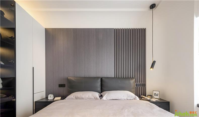 床邊的衣帽柜上方設(shè)計(jì)了暖色系照明