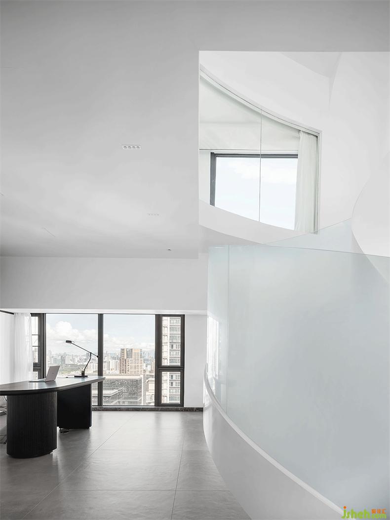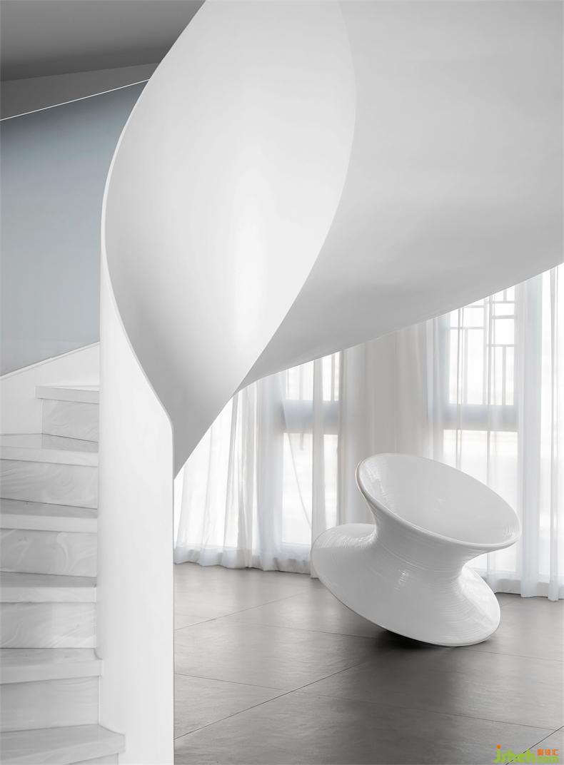 扶梯而上,流動的曲面,回應(yīng)無限的自由和遐想,極具雕塑感的設(shè)計,不僅解決了維度的局限性,室內(nèi)設(shè)計師也鏈接著建筑美學(xué)的詩意和生活,隨著距離和時間的改變,光影也隨之變幻,然后,遇見……