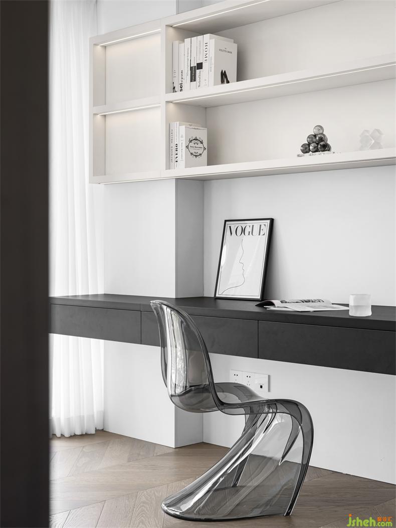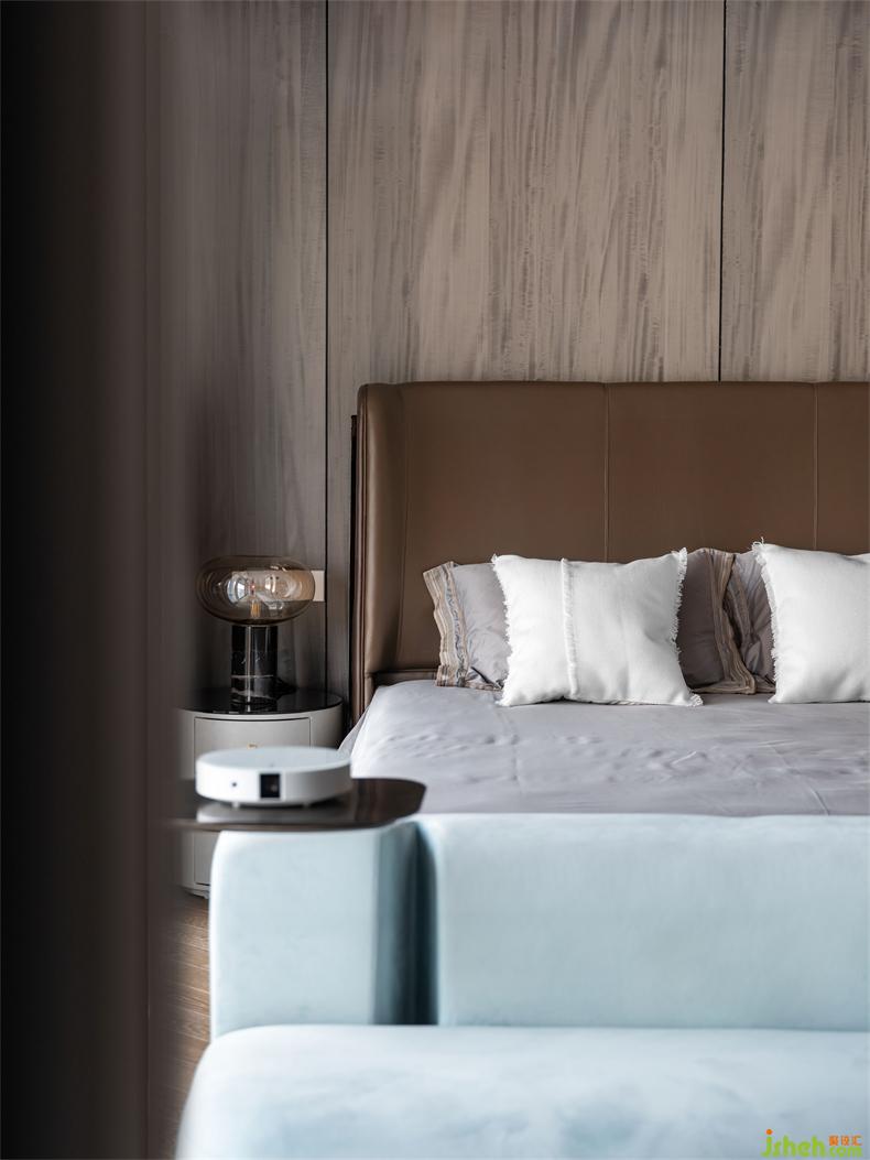 從開放到私密,從淺明到深邃,主臥的自然化處理,通過原木材質(zhì)與深色系列色調(diào)達(dá)到平衡,而白色與線條也在其中重構(gòu)屬于業(yè)主夫婦的氛圍感,成熟穩(wěn)重而不失風(fēng)趣。