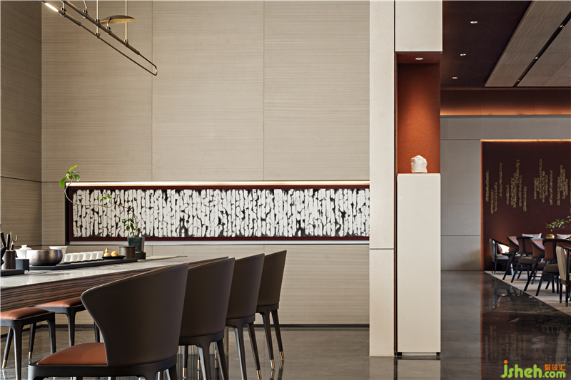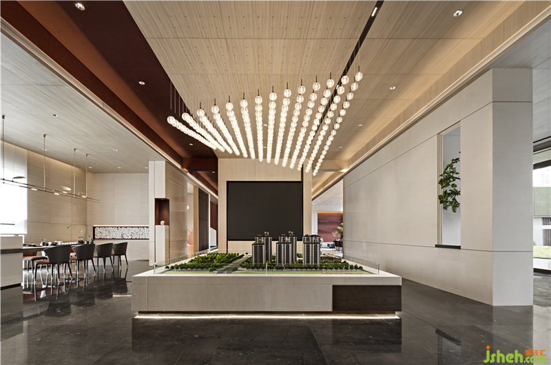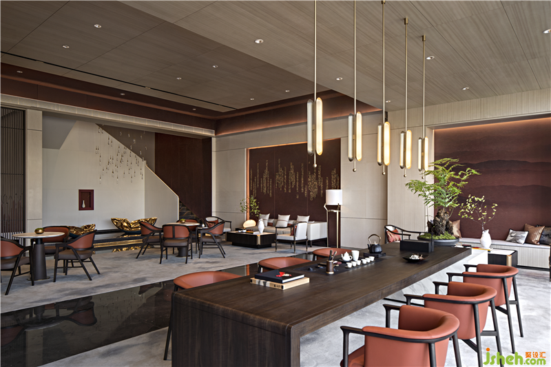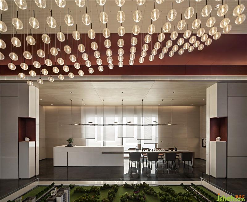 The chandelier in the sand table area is like the winding water of the Yellow River, which integrates nature and culture into the space. Tradition and contemporary combine here, which makes a better life within reach.