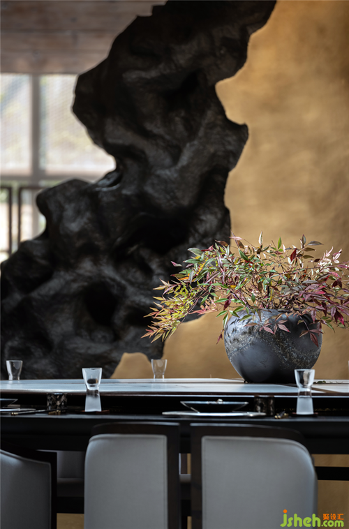 一墻拙石、墨陶竹枝、一盞茶杯,拙樸的傳統(tǒng)美感于細(xì)節(jié)中得到當(dāng)代美學(xué)的傳承,文人詩意的浪漫躍然而出。