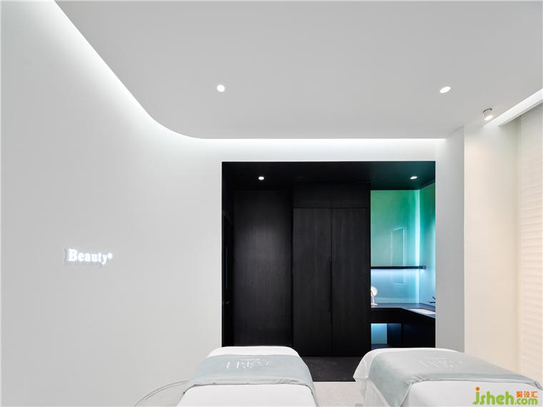 療膚中心設(shè)計(jì)利用色彩和材質(zhì)強(qiáng)化功能分區(qū),增大房間視覺格局。智能控制模塊設(shè)計(jì)了準(zhǔn)備、體驗(yàn)中、體驗(yàn)結(jié)束等不同模式的燈光亮度,并可以對音樂、投影、空調(diào)等進(jìn)行調(diào)節(jié)。