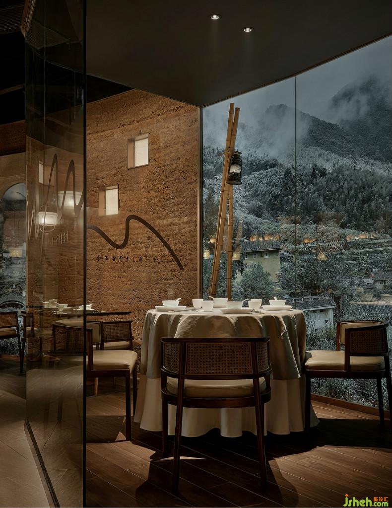 每一盞小吊燈均由白色亞克力設計制作而成的迷你圍屋,強化客家文化元素的辨識度。餐廳設計圍繞著餐桌的明檔整潔明亮,將美食烹制過程完全展現(xiàn)在食客眼前。從細小的餐桌陳設布置,到餐具設計、餐廳內(nèi)的墻面裝飾品等均經(jīng)由設計師考量,以細節(jié)動人。