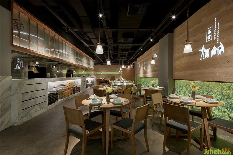 開放式明檔是店內(nèi)重要的展示舞臺,每一個灶臺的廚師都是主角。上方的紗幔上“鮮、熱、真、火、快”五個大字映入眼簾,道出衡陽小炒功夫的精髓。明黃色的吊燈組渲染干凈溫馨的餐廳氛圍,而蒸騰的鍋氣試圖喚醒你回憶里故鄉(xiāng)的裊裊炊煙,廚師烹飪過程一覽無余,菜籽油混合小炒肉的香氣撲鼻而來,塑造出餐廳的獨(dú)特氣息,勾人食欲,餐廳設(shè)計使食客可以充分領(lǐng)略到衡陽小炒“食”與“境”的美妙關(guān)系。