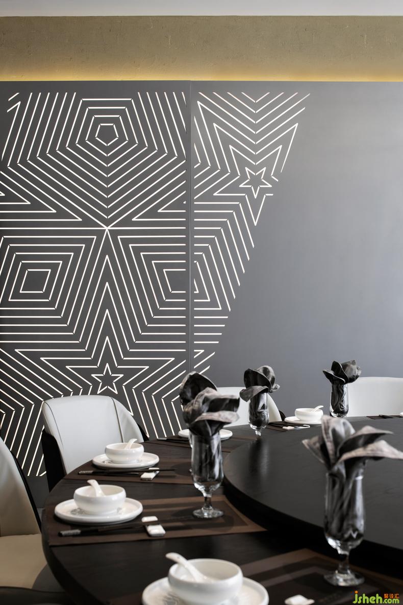 依據(jù)品牌策劃公司的“星廚”主線,餐廳設(shè)計(jì)設(shè)計(jì)師將輔助圖形五角星加以重組變化,形成重要的記憶點(diǎn)。