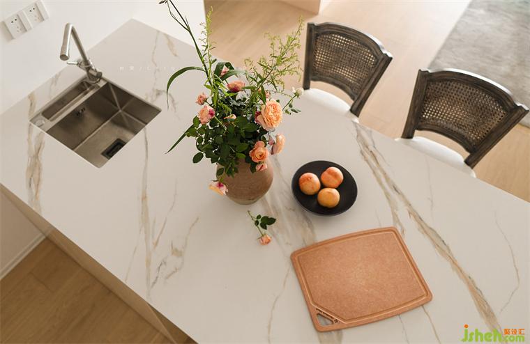 “我家客廳不想要沙發(fā)茶幾,我平時用不上。室內(nèi)設(shè)計師一張大桌子對于我來說更加實用,我平時用它閱讀、喝茶、做手工、寫書法。”——屋主。